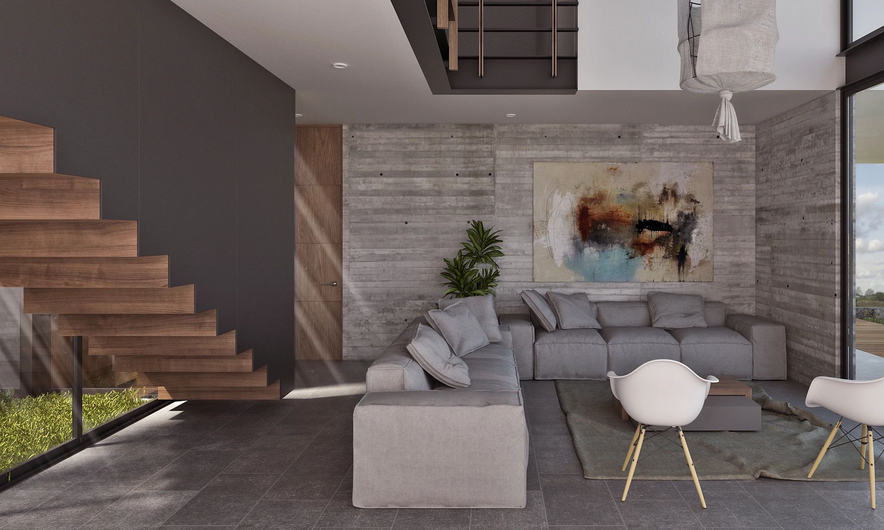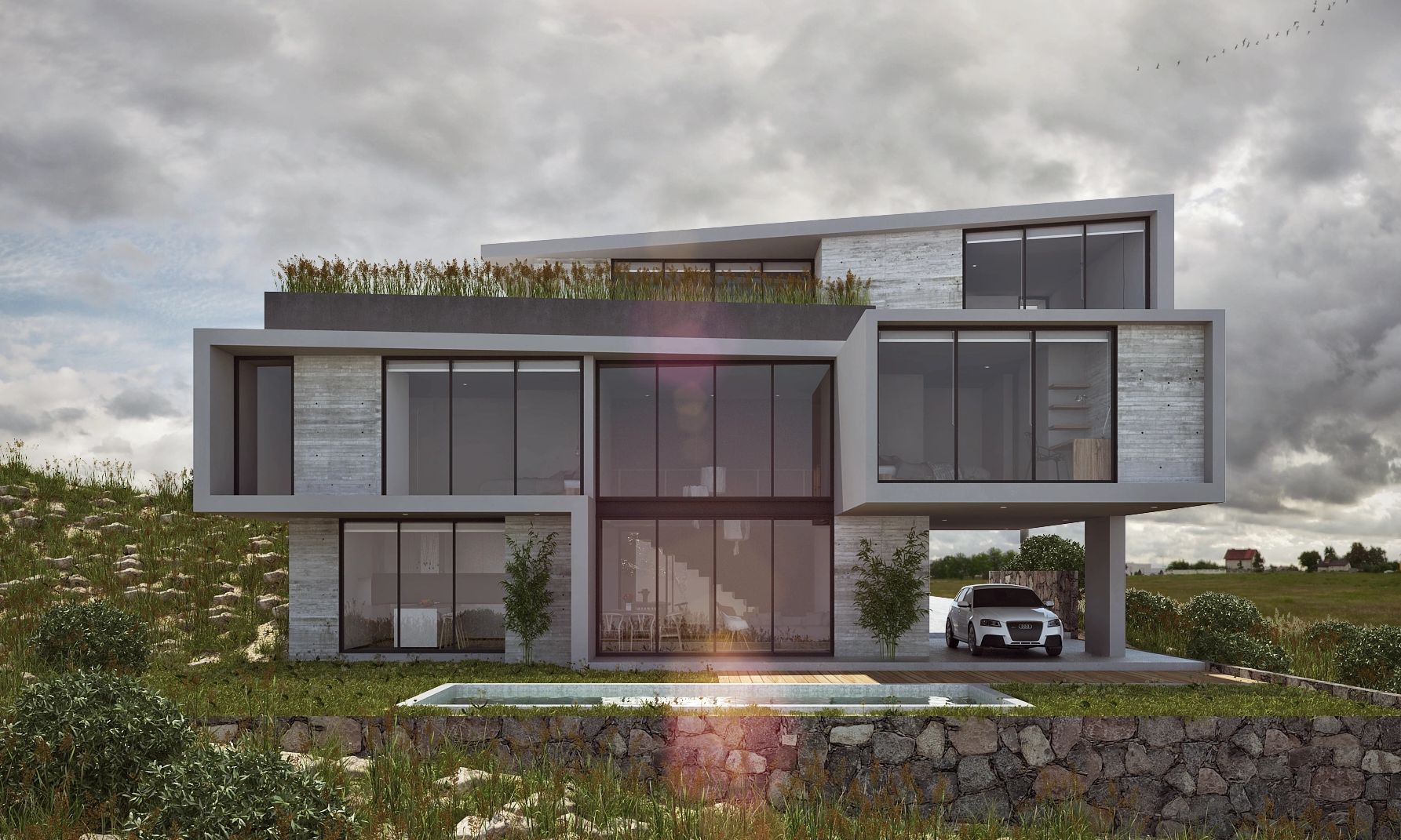 La casa es de fácil lectura, articula los espacios principales del programa por medio de la estructura de la losa que se convierte en muro y piso por igual, las orientaciones, vistas y función, dan como resultado un cuerpo permeable que organiza lo público, lo privado y lo circundante.